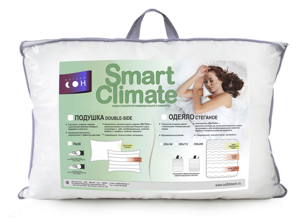«BioTwin» - вискозное волокно на основе растительного сырья, сочетающее в себе антибактериальные свойства бамбука и лечебные свойства эвкалипта. Подушки «double-side» • Технология создания подушки с различными уровнями комфорта, поддержки и упругости; • Внутренний наполнитель – волокно с эффектом адаптации; • Изделие подстраивается под ваши индивидуальные особенности; • Износостойкие материалы; • Функциональный дизайн; Нестеганая сторона обеспечивает мягкую поддержку шеи и головы. Стеганая сторона обеспечивает высокую поддержку шеи и головы. Размер: 50х70 см.